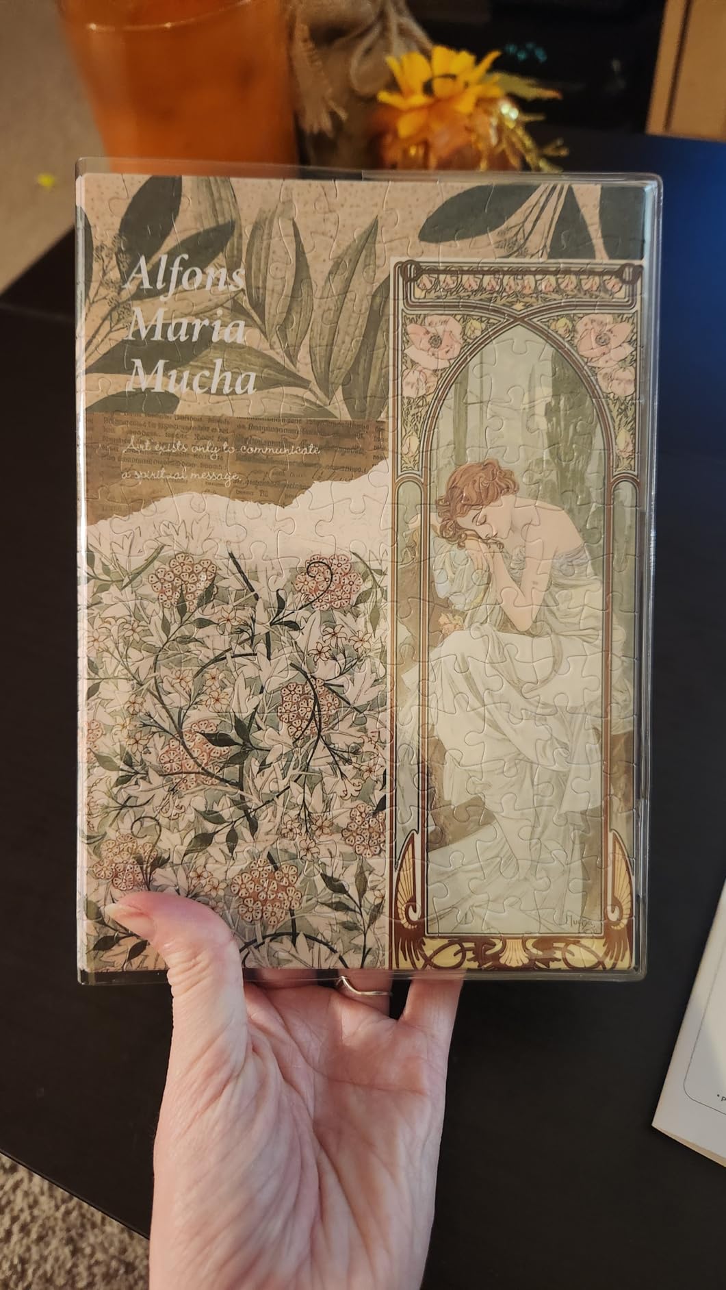 Place the clear protective layer over your finished puzzle to lock it in.