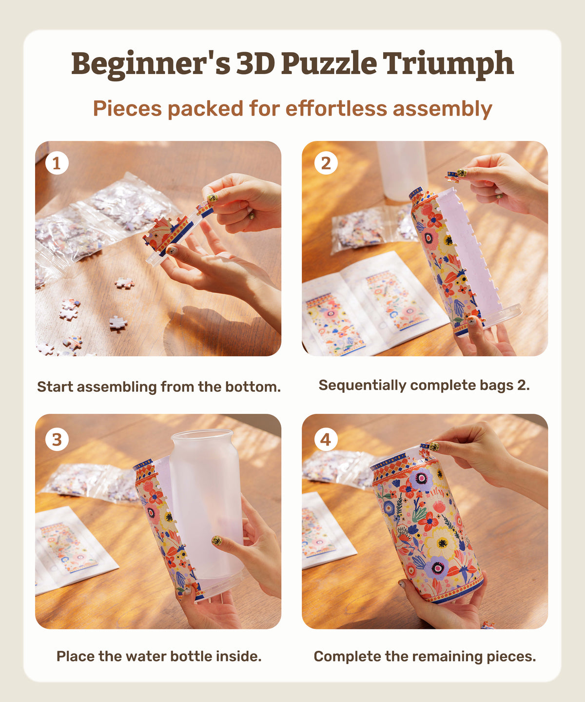 - Pieces finished with snug interlock, no need for glue when assembling.