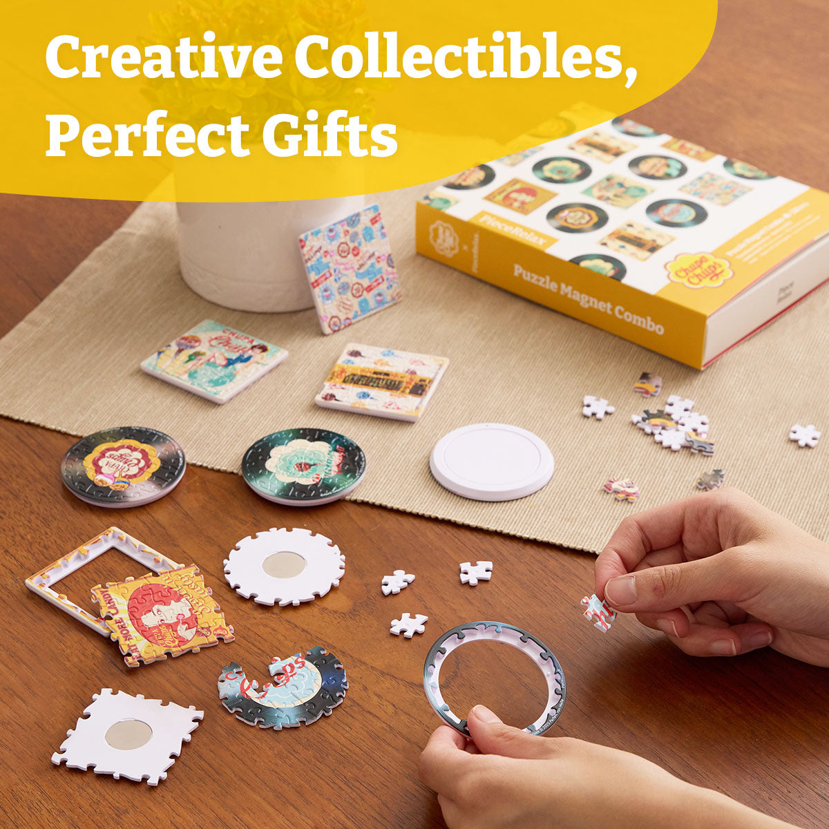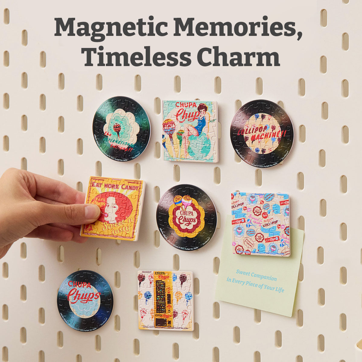 - Enjoy 8 retro-style magnet puzzles, each square measuring 2.17 x 2.17 inches, and each circle with a diameter of 2.36 inches, perfect for puzzle enthusiasts.
