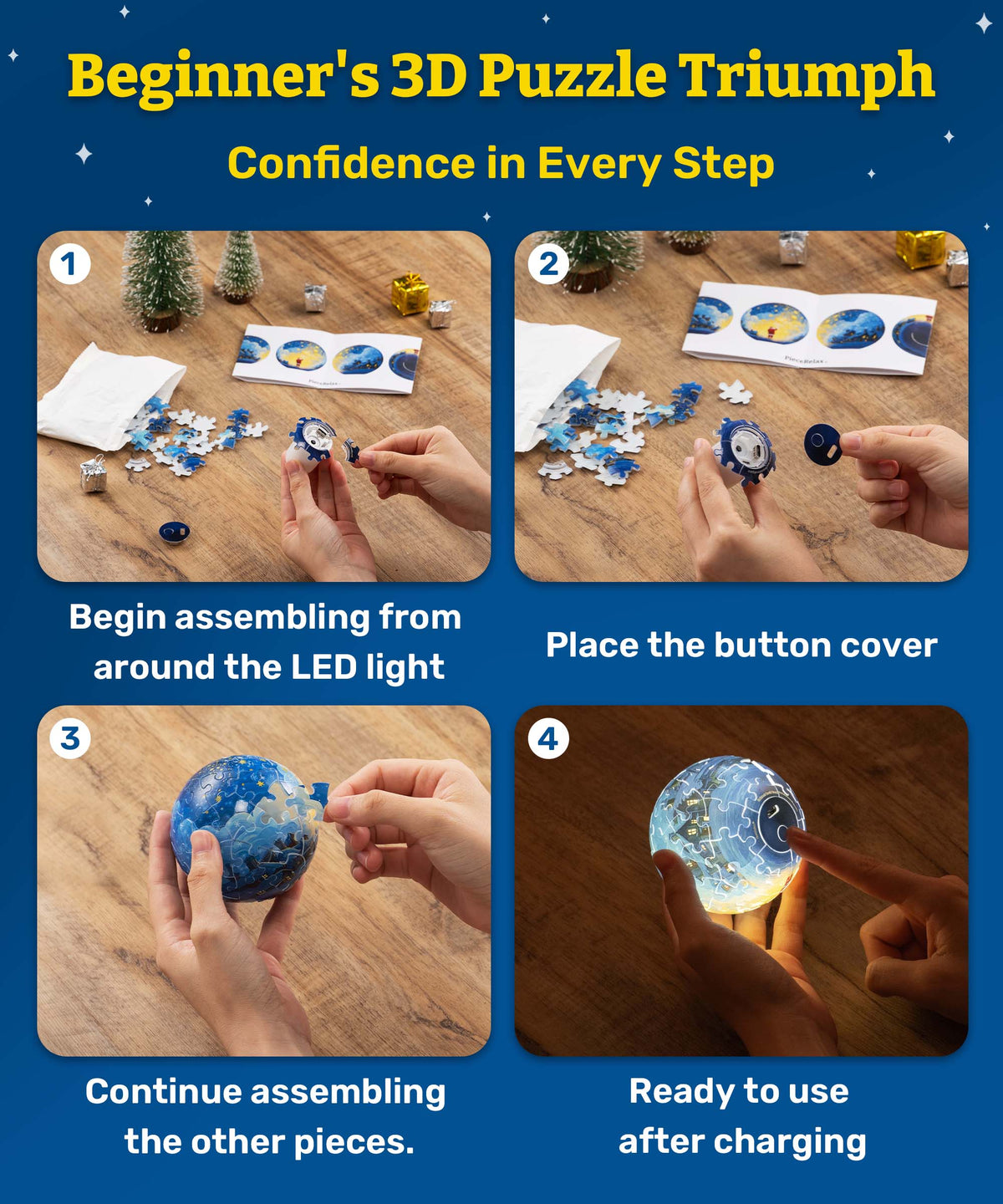 - Puzzle measures a sphere with a diameter of 3 inches.