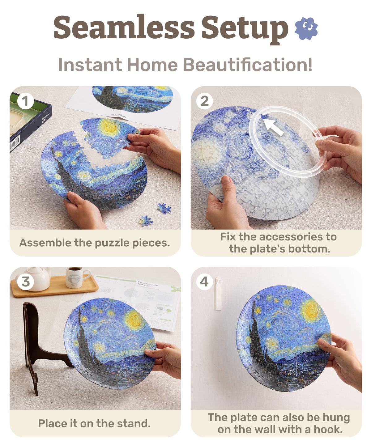 - Puzzle measures 8.94 inches in diameter and 0.79 inches in depth when completed without the stand.